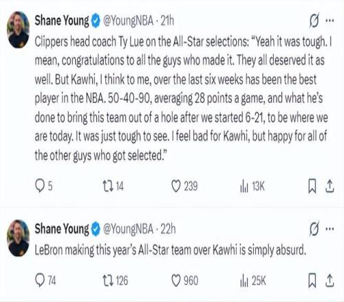 太陽記者Shane Young都為小卡抱不平:勒布朗可以入選今年全明星,而小卡卻落選這太荒謬了吧!