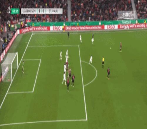 第63分鐘,擴(kuò)大比分!??藫岦c(diǎn)低射破門,勒沃庫(kù)森2-0圣保利