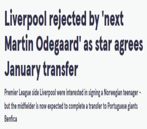 時(shí)間來(lái)到2023年,謝爾德魯普登上更大的舞臺(tái)。包括阿森納、利物浦等英超強(qiáng)隊(duì)均向其拋出橄欖枝。但對(duì)自己成長(zhǎng)軌跡有清晰規(guī)劃的挪威人選擇了葡萄牙的本菲卡,當(dāng)時(shí)媒體的報(bào)道是“利物浦被下一個(gè)厄德高拒絕了?!?/p>