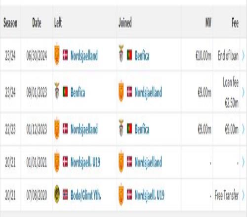 2023年1月,本菲卡以900萬(wàn)歐的價(jià)格買下了這位新星;據(jù)《足球經(jīng)理》游戲的數(shù)據(jù),他當(dāng)時(shí)是《足球經(jīng)理2023》中“被簽下次數(shù)最多的球員”。這也令眾多的足球迷對(duì)這位挪威球員印象深刻。