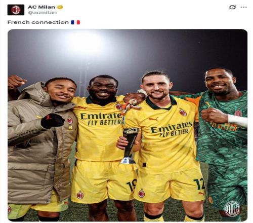 而拉比奧特的爆發(fā),也是米蘭“法國(guó)幫”集體發(fā)威的體現(xiàn)。本場(chǎng)除了他,恩昆庫(kù)創(chuàng)造點(diǎn)球并罰進(jìn),邁尼昂穩(wěn)健零封,福法納踢滿全場(chǎng)。米蘭官方社媒賽后特意曬出四人合照,配文“法國(guó)幫”。這條中軸線(門將-中場(chǎng)-前鋒)的穩(wěn)定輸出和默契,構(gòu)成了米蘭戰(zhàn)術(shù)體系的國(guó)際縱隊(duì)核心,他們的出色狀態(tài)是球隊(duì)?wèi)?zhàn)績(jī)的硬保障。