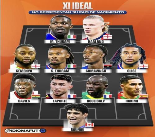 最近Idiomafut發(fā)布了“不代表出生國(guó)的最佳陣容”。哈蘭德、圖拉姆、奧利塞、卡馬文加、戴維斯、拉波爾特、庫利巴利、哈基米和布努入選。名單里最大的反差,是他們的出生國(guó)和代表國(guó)家隊(duì)對(duì)不上,英格蘭、意大利、法國(guó)、加拿大這些出生地和最終選擇的國(guó)家隊(duì)形成了明顯錯(cuò)位。把這11個(gè)人按位置拼成一套首發(fā),這套陣容的整體實(shí)力到底能到什么檔次?
