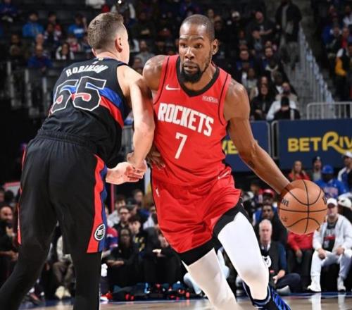 火箭去年休賽期從太陽換來杜蘭特后,目前以29勝17負(fù)的戰(zhàn)績(jī)穩(wěn)居西部第四的位置。這份成績(jī)單相當(dāng)不錯(cuò)了。因?yàn)檫@是在核心球員范喬丹和亞當(dāng)斯賽季報(bào)銷的情況下。杜蘭特幾乎以單核帶隊(duì)的姿態(tài),扛起了球隊(duì)的進(jìn)攻大旗,他的表現(xiàn)無可挑剔,在攻防兩端都是這樣。截至目前,37歲杜蘭特在本賽季為火箭出戰(zhàn)44場(chǎng),全部首發(fā),場(chǎng)均上場(chǎng)36.8分鐘,貢獻(xiàn)26.5分5.4籃板4.5助攻,投籃命中率高達(dá)51.4%,三分命中率達(dá)到40.8%,罰球命中率88.6%。