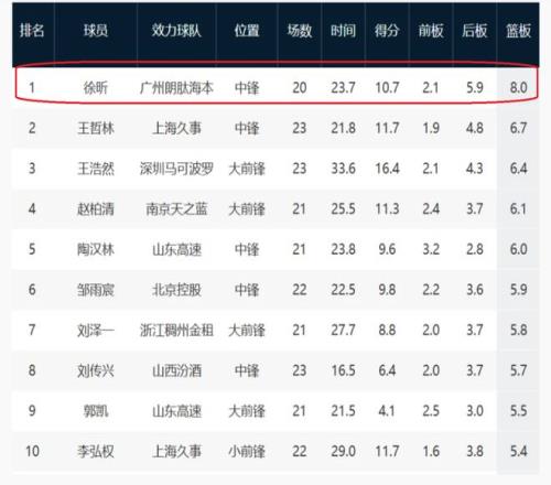 如今的徐昕,在廣州隊(duì)已經(jīng)坐穩(wěn)了第一中鋒的位置,幾乎每一場(chǎng)比賽打首發(fā),場(chǎng)均可以交出10.7分8籃板2.1蓋帽的全面數(shù)據(jù)。其中,場(chǎng)均2.1蓋帽,排在CBA第一位。場(chǎng)均8個(gè)籃板,排在CBA本土球員第一。