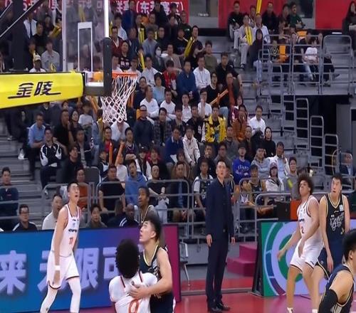 次節(jié)3分鐘左右,古德溫一對(duì)一背打張皓嘉,在出手的一瞬間古德溫與張皓嘉發(fā)生肢體接觸后倒地,理論上這是一個(gè)A點(diǎn)到B點(diǎn)的投籃犯規(guī),但是裁判沒(méi)有做出吹罰。