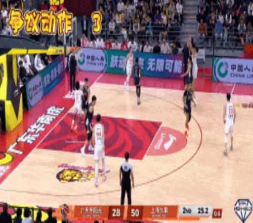 首節(jié)比賽打到4分鐘左右,古德溫持球推進(jìn)遭到了廣東小將陳家政的緊逼防守犯規(guī)。