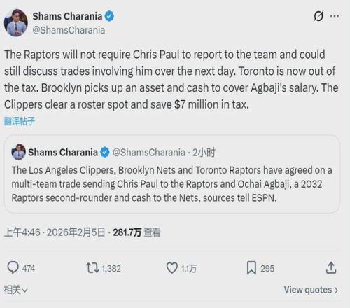 籃網(wǎng)相當(dāng)于用空間吃下阿巴基的合同,得到1個次輪簽和350萬美元的現(xiàn)金補(bǔ)償??齑v出一個陣容名額,而且省下700萬美元的奢侈稅。猛龍2換1,用年薪638萬的阿巴基和次輪簽,換來年薪363萬的保羅,無需再繳納奢侈稅。