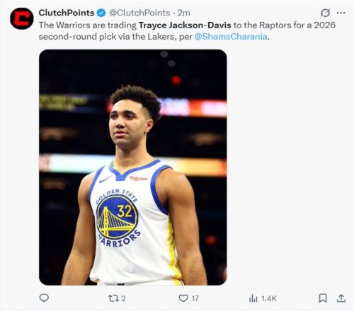 很快Shams接著報道,勇士隊將杰克遜-戴維斯交易到猛龍隊,換來一個2026年的次輪簽。這個次輪簽是勇士隊從湖人處得到的2026年次輪簽。猛龍隊通過阿巴基的交易已經(jīng)避免了奢侈稅,得到TDJ后也獲得了更大的尺寸優(yōu)勢。