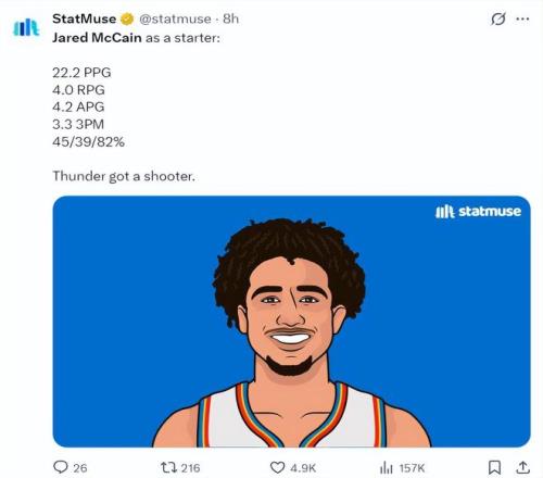 雷霆4換1魔仙哥虧慘美記列4關(guān)鍵點直言超劃算可做SGA傷缺替身
