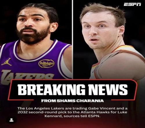 據(jù)Shams報(bào)道,湖人將蓋布-文森特和一個(gè)2032年的次輪簽送到老鷹,得到盧克-肯納德。
