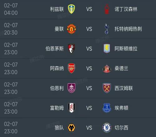 北京時間2月7日,明天的英超第25輪打響,一共要進行7場比賽,我們看看每一場比賽的比賽時間和前瞻簡述!