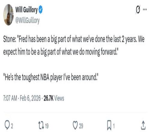 斯通也在發(fā)布會中確認這一點:“他(范喬丹)在過去兩年為球隊做出重要貢獻,我們仍相信他未來還會是球隊的支柱,他也是我接觸過最堅韌的球員。”