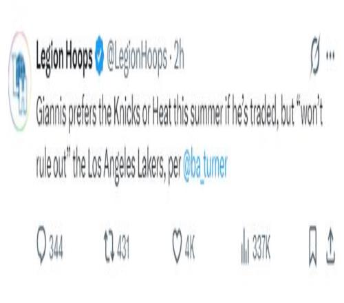 根據(jù)NBA記者的說(shuō)法,揚(yáng)尼斯今夏傾向于加盟尼克斯,但不排除選擇洛杉磯湖人隊(duì)。