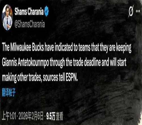 北京時間2月6日凌晨,本賽季交易截止日的大門即將關(guān)閉,就在所有人都在翹首以待,看字母哥花落誰家的時候,密爾沃基雄鹿忽然對外宣布,他們已經(jīng)終止了所有的交易談判。