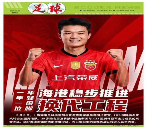 記者程善報道2月5日,上海海港足球俱樂部與青島西海岸俱樂部同步官宣,U23國腳楊希正式轉(zhuǎn)會加盟海港隊。這筆轉(zhuǎn)會費相當于本賽季中超冬窗本土標王級別的交易,歷經(jīng)多方博弈最終塵埃落定。繼21歲的吾米提江逐步成長為球隊主力并展現(xiàn)出足以躋身國家隊的能力之后,20歲的國家隊未來右閘希望將攜中超搶斷王與U23亞洲杯亞軍主力成員的雙重光環(huán),填補海港右路防線的關(guān)鍵空缺,為衛(wèi)冕冠軍的多線作戰(zhàn)征程注入新生力量。