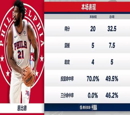 末節(jié)打了4分鐘恩比德就1個(gè)出手沒拿分,隨后的6分鐘里恩比德4中2+罰球1中1拿到5分1助攻,決勝時(shí)刻球權(quán)幾乎都在馬克西手中,球很難再度打到恩比德手中,最終恩比德未能力挽狂瀾再度幫助費(fèi)城反超。