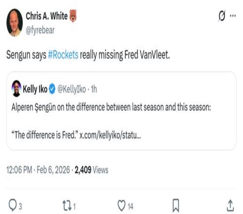 火箭隊(duì)苦吞2連敗,申京僅7分仍不忘全明星!遭KD烏度卡場上場下連續(xù)批評后,賽后公開表示想念范喬丹。