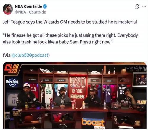 在交易市場的兩招大手筆之后,前NBA球員蒂格直接在節(jié)目中公開稱贊奇才總裁邁克爾·溫格的操作: