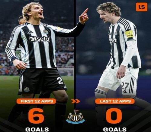 據(jù)統(tǒng)計(jì),沃爾特馬德在代表紐卡斯?fàn)柭?lián)的前12場(chǎng)比賽中打進(jìn)6球,但在過去的12場(chǎng)比賽中,他顆粒無收。他上一次進(jìn)球還是在英超第17輪對(duì)切爾西的比賽中上演的梅開二度。