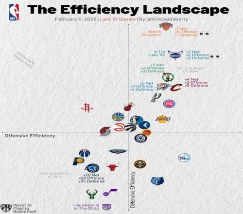 而最近的一項(xiàng)數(shù)據(jù)也是體現(xiàn)出了火箭隊(duì)的掙扎,最近的10場(chǎng)比賽的攻防效率中,火箭隊(duì)的防守效率算是處于聯(lián)盟的中等偏上,但是進(jìn)攻效率非常一般,僅僅比籃網(wǎng)隊(duì)要好,與步行者,奇才,雄鹿和魔術(shù)這些球隊(duì)的進(jìn)攻效率相當(dāng),這樣的表現(xiàn)還是很難贏球的。