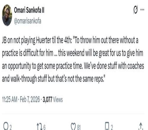 比克斯塔夫賽后解釋了為何僅讓其出戰(zhàn)8分鐘:“讓他在沒有與球隊(duì)進(jìn)行過任何合練的情況下出戰(zhàn)很難,這個(gè)周末球隊(duì)將給他機(jī)會(huì)參與訓(xùn)練找狀態(tài)?!?/p>