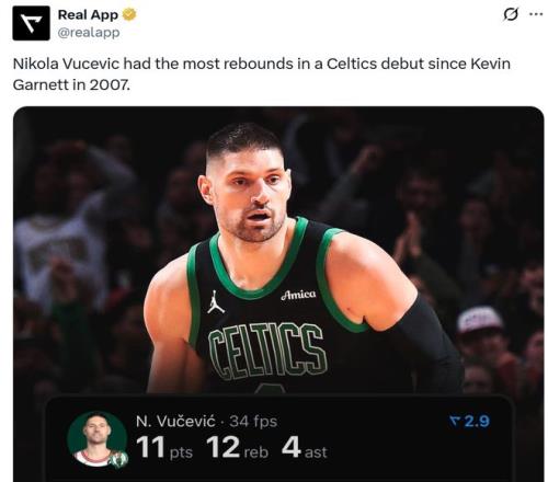 憑借這樣的表現(xiàn),武切維奇首秀就打破紀(jì)錄,成為07年加內(nèi)特(20個(gè))后綠軍首秀搶下最多籃板的球員。