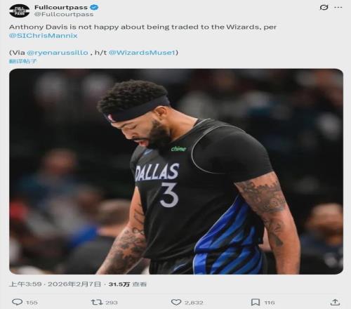 北京時(shí)間2月7日,據(jù)《體育畫報(bào)》記者Chris Mannix報(bào)道,安東尼-戴維斯對自己被交易到奇才感到不滿。另據(jù)TA記者Joe Vardon報(bào)道,在濃眉去奇才的交易中,經(jīng)紀(jì)人里奇-保羅事先并不知情。話說回來,球隊(duì)交易不一定要征求經(jīng)紀(jì)人的意見。