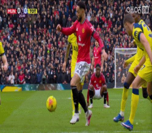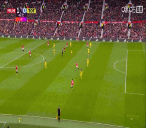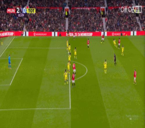 第80分鐘,達(dá)洛特傳中,B費(fèi)門(mén)前包抄破門(mén),曼聯(lián)2-0領(lǐng)先熱刺