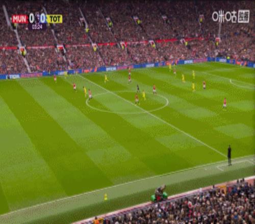 第37分鐘,曼聯(lián)角球配合,姆伯莫推桿破門(mén),曼聯(lián)1-0領(lǐng)先熱刺!