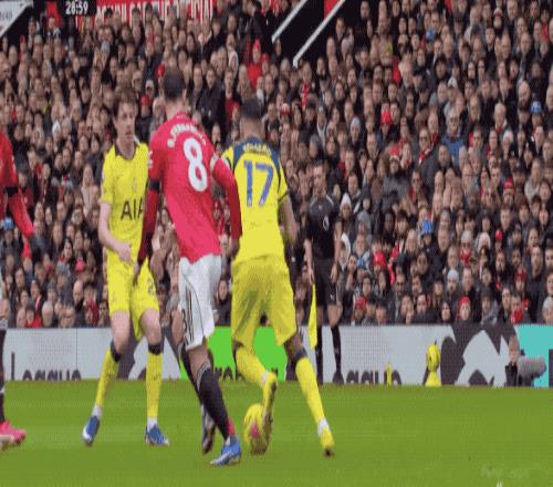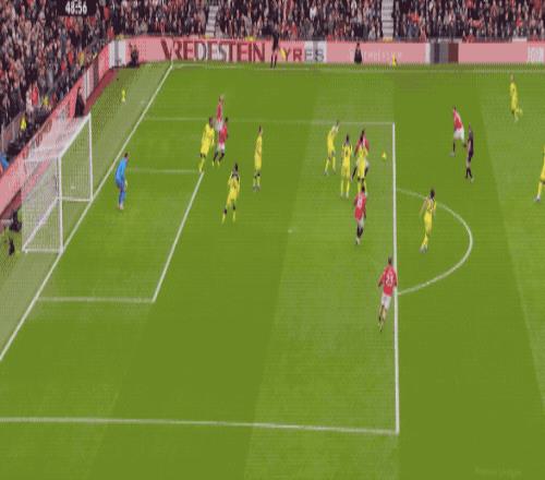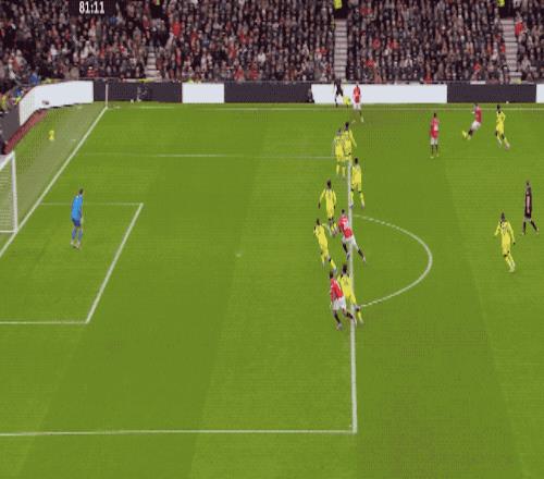 第81分鐘,達(dá)洛特45度傳中,舍什科爭頂沒能碰到皮球,B費后點包抄,彈射破門。這是B費為紅魔制造的第200個進(jìn)球。