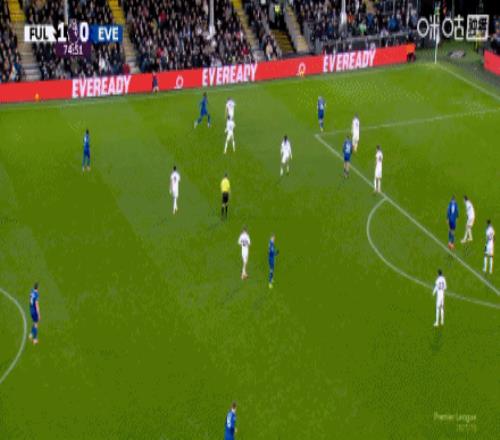 第75分鐘,霍爾中路搶點,低射扳平比分,富勒姆1-1埃弗頓