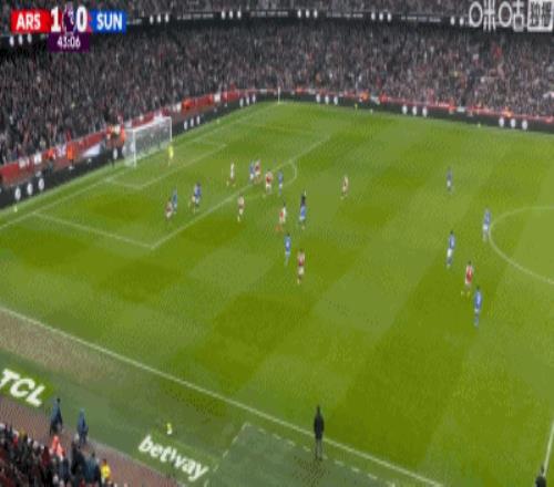第90+4分鐘,哲凱賴什推射空門完成梅開(kāi)二度,阿森納3-0桑德蘭
