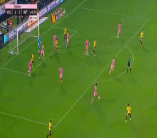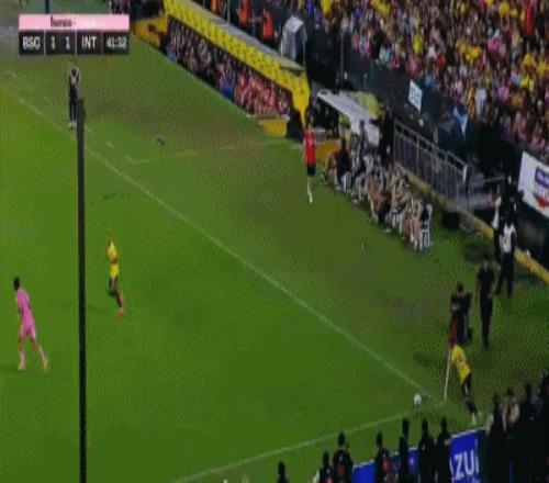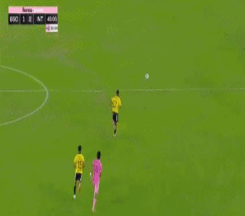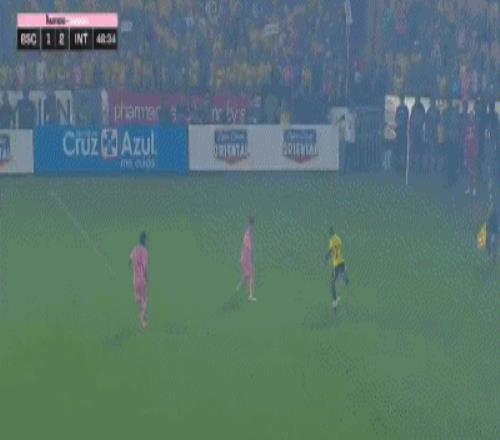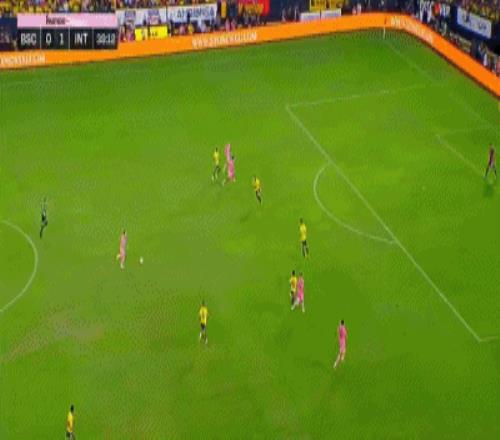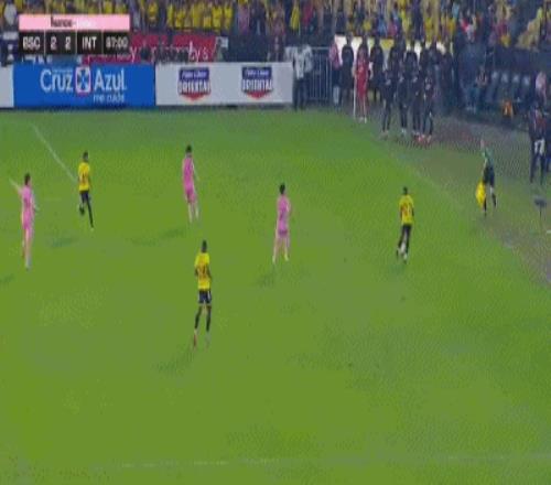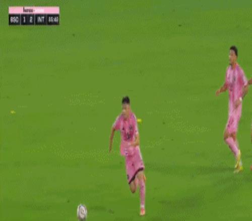 第45+3分鐘,梅西送助攻,新援貝爾泰拉梅低射得分,邁阿密?chē)?guó)際2-1