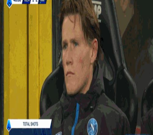 第20分鐘,兩位曼聯(lián)棄將聯(lián)手為那不勒斯扳平比分。麥克托米奈勁射被撲出,霍伊倫補射建功,場上比分變?yōu)?-1。