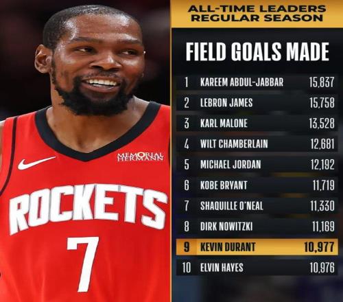 杜蘭特生涯總進(jìn)球數(shù)超越埃爾文-海耶斯,升至歷史第9位迎來里程碑。