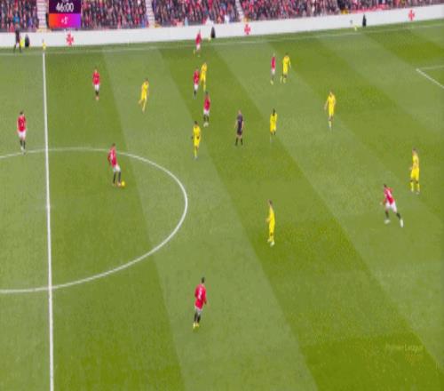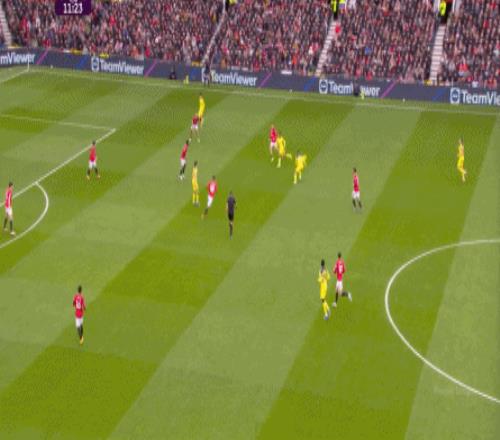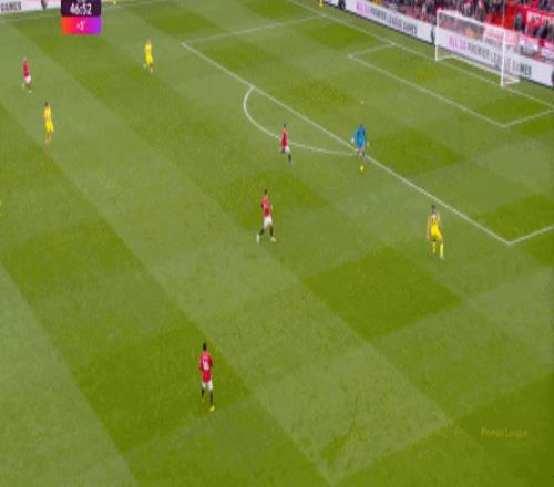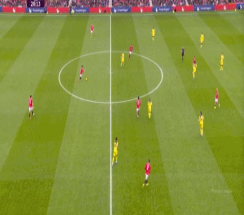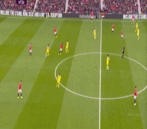 這看似是熱刺即將成功把曼聯(lián)憋在后場的前奏,因為在這里上身體的話,熱刺要么成功奪回球權(quán),要么用一次不會招致黃牌的犯規(guī)回到后場,結(jié)果曼聯(lián)用大腳找到了來到中路的阿瑪?shù)?迪亞洛,立刻形成了一次威脅進攻: