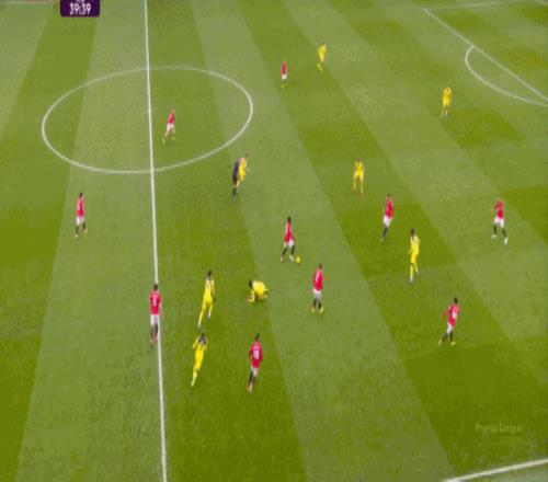 于是在30分鐘后,曼聯(lián)就形成了多打一人,這在主場是清晰的優(yōu)勢,所以在第38分鐘,曼聯(lián)通過中路配合和爭搶制造的角球,完成了比分的領(lǐng)先: