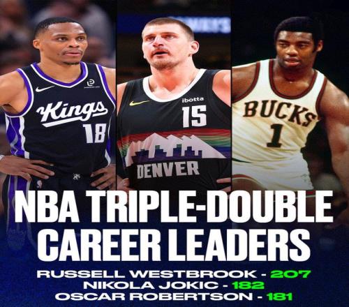 并且約基奇僅花費(fèi)兩節(jié)半時(shí)間就拿下三雙,這樣一來(lái),約基奇生涯三雙次數(shù)來(lái)到182次,正式超越大O奧斯卡羅伯特森獨(dú)占NBA歷史三雙榜第二。