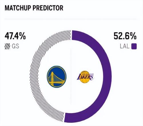 賽前,美媒ESPN對本場比賽進(jìn)行了勝率預(yù)測,湖人隊(duì)勝率為52.6% ,勇士勝率則僅有47.4% ,算是半斤八兩。