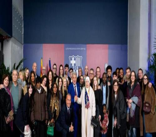 世體報道拉波爾塔本屆主席卸任日:溫情滿滿,與球員家屬合影