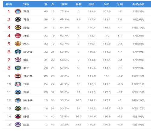 馬刺贏球后4連勝,戰(zhàn)績36勝16負排名西部第二,領先第三的掘金2.5個勝場。