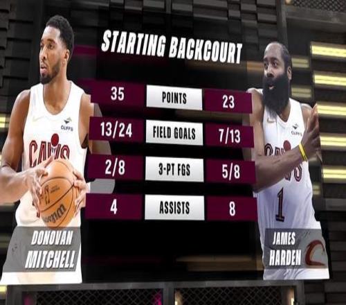哈登出戰(zhàn)32分鐘,13投7中,其中三分球8投5中得到23分2籃板8助攻1搶斷。米切爾出戰(zhàn)34分鐘,投籃24中13,三分球8中2,罰球7中7,得到35分2籃板4助攻2搶斷2蓋帽。哈登組織控場,米切爾攻堅得分,有點(diǎn)像21年打進(jìn)總決賽的太陽配置了。當(dāng)時太陽就是以保羅和布克為雙槍,保羅發(fā)牌,布克攻堅。