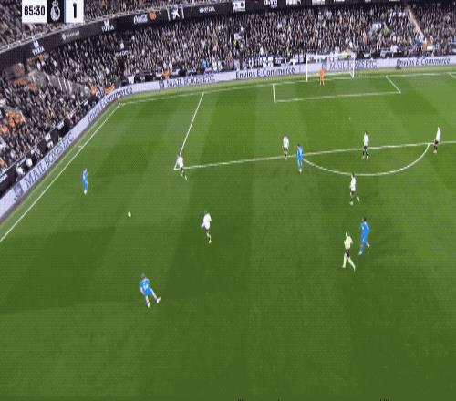 開場之后,皇馬并沒有迅速大舉壓上,瓦倫西亞還是打出了一些不錯的配合,并沒有被動防守。