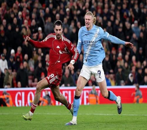 憑借索博斯洛伊打入的任意球世界波,利物浦取得領(lǐng)先。然而,貝爾納多-席爾瓦、哈蘭德各入一球,曼城逆轉(zhuǎn)了比分。