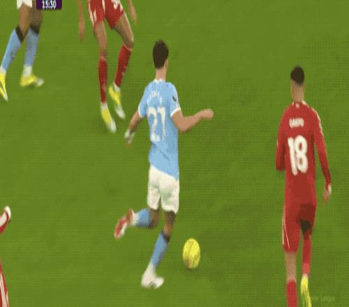 曼城的進攻一浪高過一浪,在前場的施壓,迫使利物浦頻繁丟失球權(quán)。第40分鐘,馬爾穆什的遠射力量十足,但沒能命中目標。