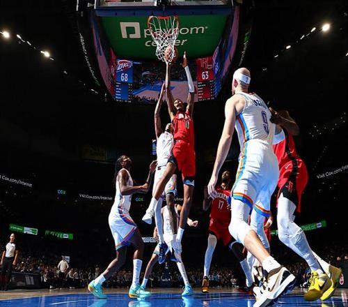 也是不容易!火箭鋒線新星面對雷霆在進攻端終于強硬了一把