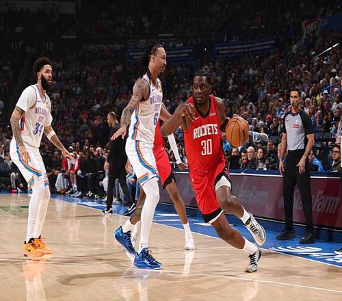 在此前的一場NBA常規(guī)賽中,休斯頓火箭經(jīng)過苦戰(zhàn)后以112比106戰(zhàn)勝了主場作戰(zhàn)的俄克拉荷馬城雷霆。本場比賽后,結(jié)束了兩連敗的火箭的戰(zhàn)績提升到了32勝19負(fù),繼續(xù)排名西部第4位,與身前的丹佛掘金的勝場差為半場;而遭遇了兩連敗的雷霆的戰(zhàn)績則是下滑到了40勝13負(fù),繼續(xù)排名西部榜首位置,與身后的圣安東尼奧馬刺的勝場差為3.5場。