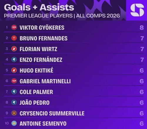 自2026年以來,哲凱賴什已經(jīng)在各項賽事貢獻6球2助攻,是同期所有英超球員中各項賽事參與進球數(shù)最多的(曼城和利物浦比賽開打前)。