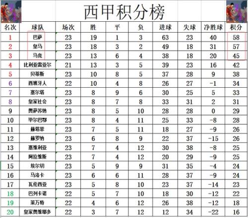 西甲最新積分戰(zhàn)報爭冠二人轉(zhuǎn)姆巴佩破門皇馬奪7連勝差巴薩1分