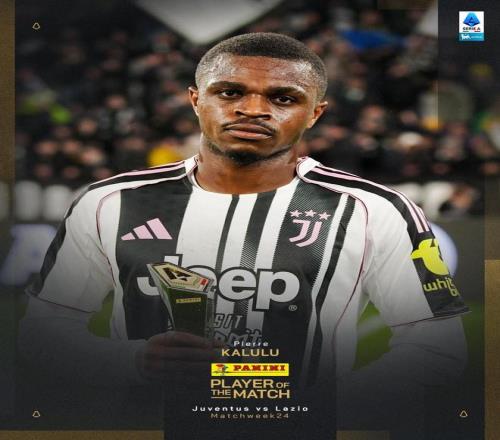 官方消息,卡盧盧當選尤文圖斯對陣拉齊奧一役全場最佳。